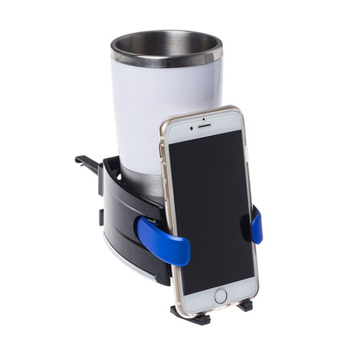 Πολύ πρακτική ποτηροθήκη για τους αεραγωγούς του αυτοκινήτου που συνδυάζει τοποθέτηση καφέ ή αναψυκτικού και βάση κινητού τηλεφώνου.