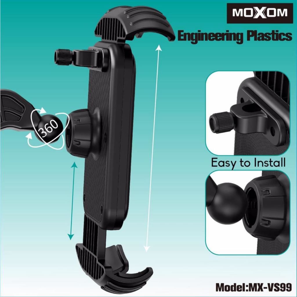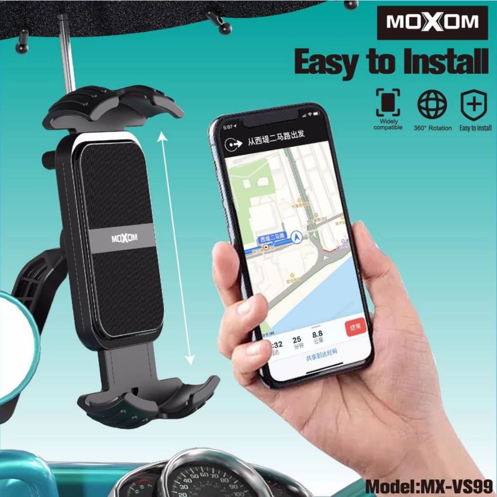 Στηρίξτε με άνεση και ευκολία το κινητό σας τηλέφωνο στο ποδήλατο, το πατίνι ή τη μηχανή σας με αυτή την ευέλικτη Περιστρεφόμενη Βάση Κινητού της Moxom.