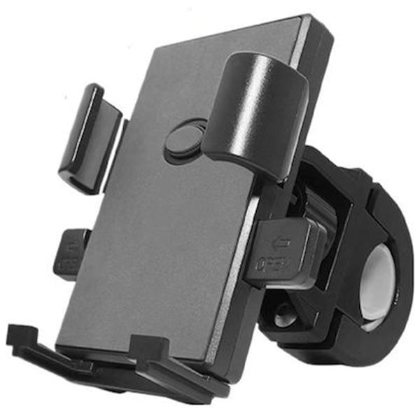 Η βάση κλειδώνει με ρυθμιζόμενο αντάπτορα που περιλαμβάνεται στη συσκευασία και τοποθετείτε στη μπάρα του τιμονιού της μηχανής.