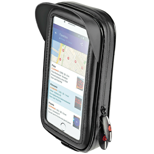 Αδιάβροχη προστασία για να μπορείτε να τη χρησιμοποιείτε εύκολα ακόμα και σε συνθήκες κακοκαιρίας με οπή καλωδίου για παροχή ρεύματος και μπροστινή διαφάνεια που επιτρέπει τη χρήση της οθόνης του κινητού.