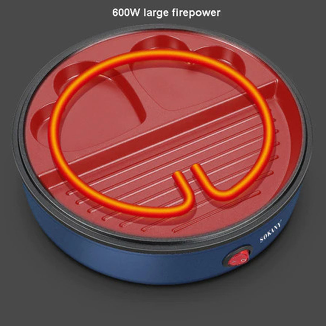 Επιτραπέζια ψησταριά από την εταιρεία Sokany με μέγιστη ισχύ 600W για ψήσιμο φαγητών όπως το ψάρι, το κρέας και τα λαχανικά. Τα πλεονέκτηματα των ηλεκτρικών ψησταριών είναι ότι ανάβουν αμέσως, πιάνουν θερμοκρασία γρήγορα και αποθηκεύονται εύκολα.