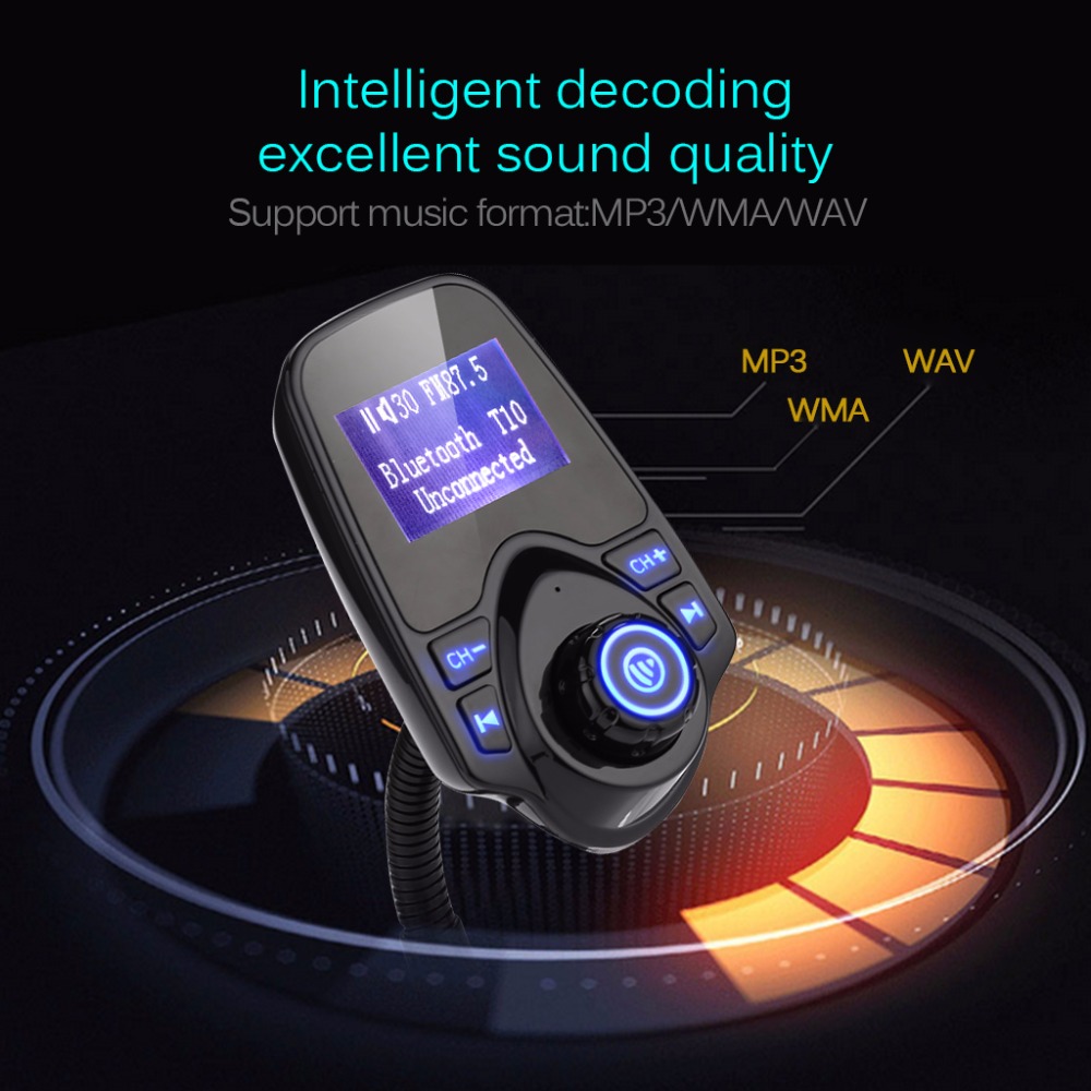 Το απόλυτο gadget για το αυτοκίνητο σας. Ασύρματος πομπός αναμεταδότης αυτοκινήτου - FM transmitter με ενσωματωμένο μικρόφωνο που συνδυάζει bluetooth ανοικτής ακρόασης handsfree για το κινητό σας, USB, Micro SD και audio in AUX input MP3 player και φορτιστή USB υψηλής ισχύος.