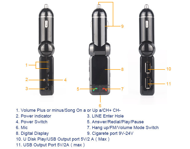 Το απόλυτο gadget για το αυτοκίνητο σας. Αυτός ο ασύρματος πομπός συνδυάζει bluetooth ανοικτής ακρόασης για το κινητό σας, USB, AUX MP3 player και δύο εξόδους USB υψηλής ισχύος 2,1Α για ταχύτερη φόρτιση των συσκευών σας.
