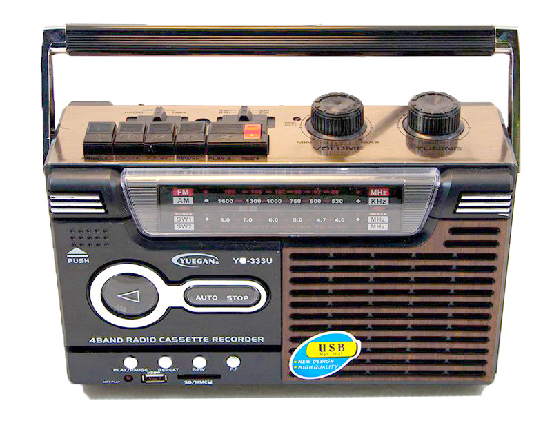Το φορητό κασετόφωνο εγγραφής έχει ραδιόφωνο παγκοσμίου λήψεως FM/MW/SW1-7 WORLD BAND RECEIVER.