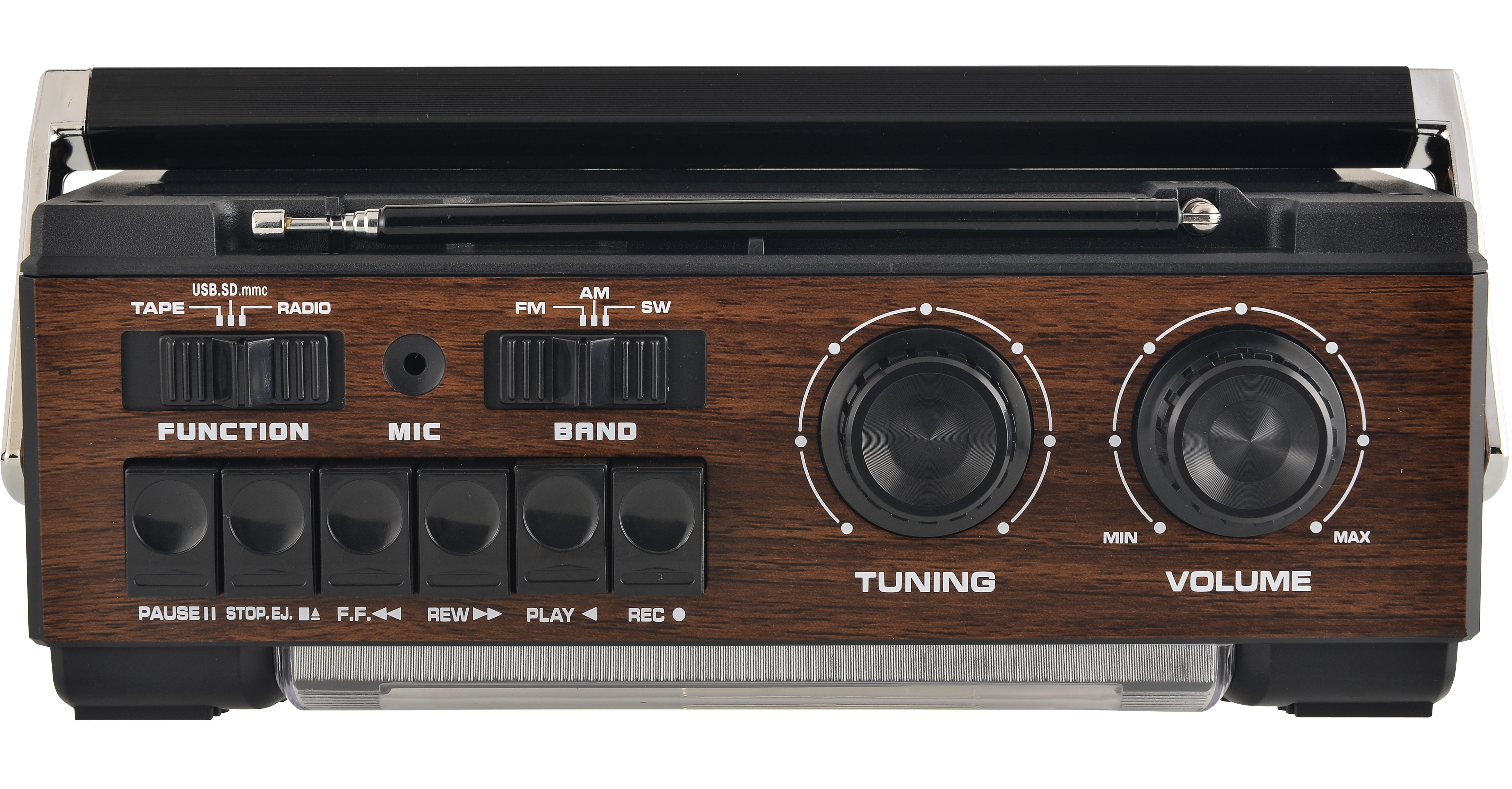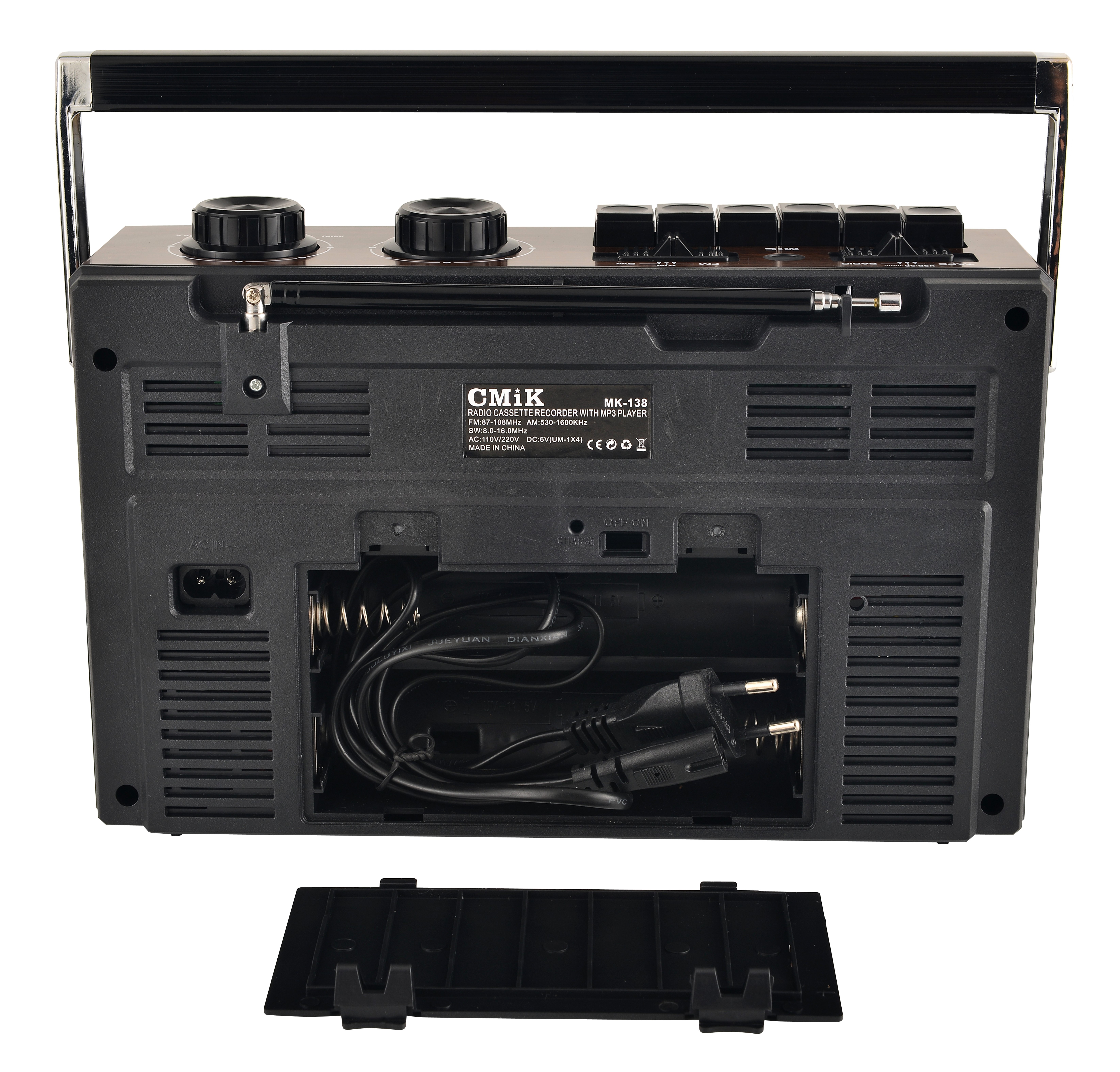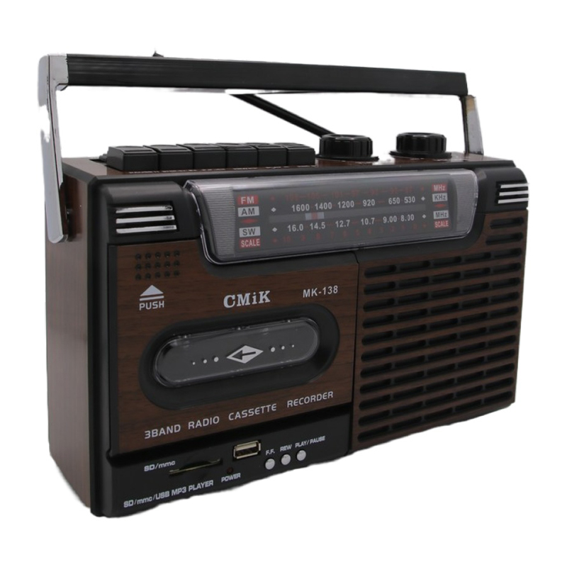 Το φορητό κασετόφωνο εγγραφής έχει ραδιόφωνο παγκοσμίου λήψεως FM/MW/SW 3 BAND RECEIVER.