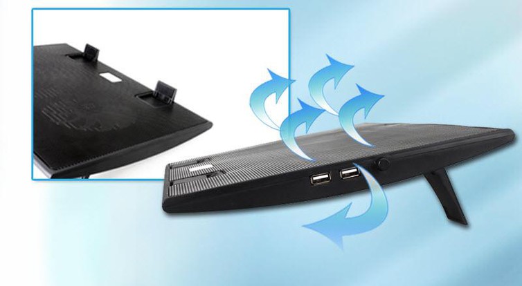 2 ανεμιστήρες τραβάνε και διώχνουν το ζεστό αέρα από το κάτω μέρος του φορητού υπολογιστή. Διατηρεί χαμηλή θερμοκρασία για να αυξήσει την διάρκεια ζωής του υπολογιστή.