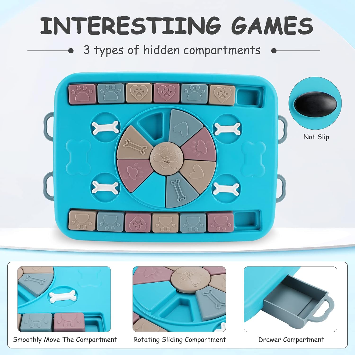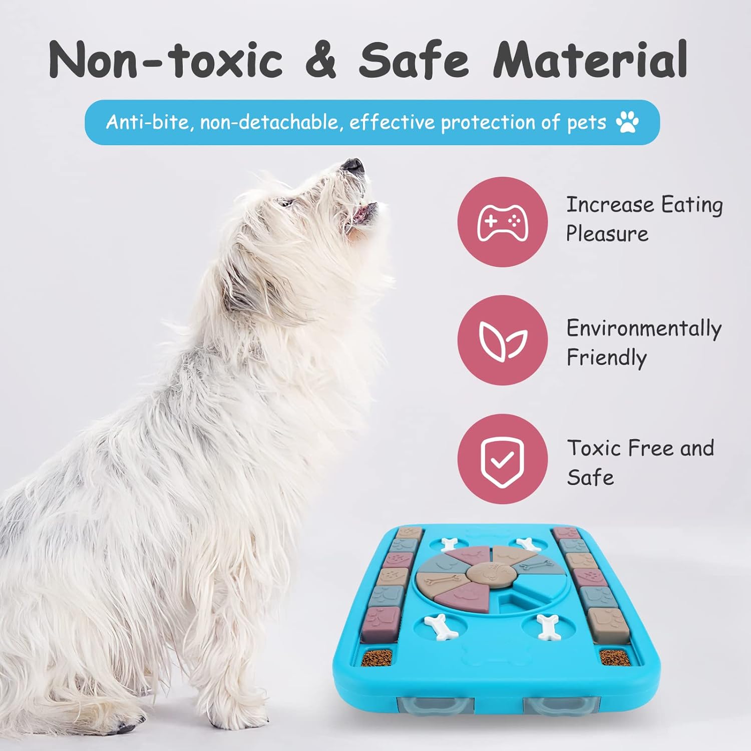 Η βάση του είναι αντιολησθητική ώστε να μην κουνιέται κατά τη διάρκεια του παιχνιδιού, ενώ είναι κατασκευασμένο από μη-τοξικό υλικό, κατάλληλο για ζώα!