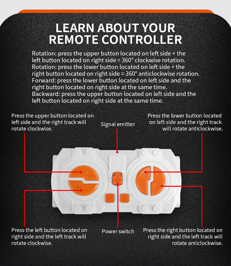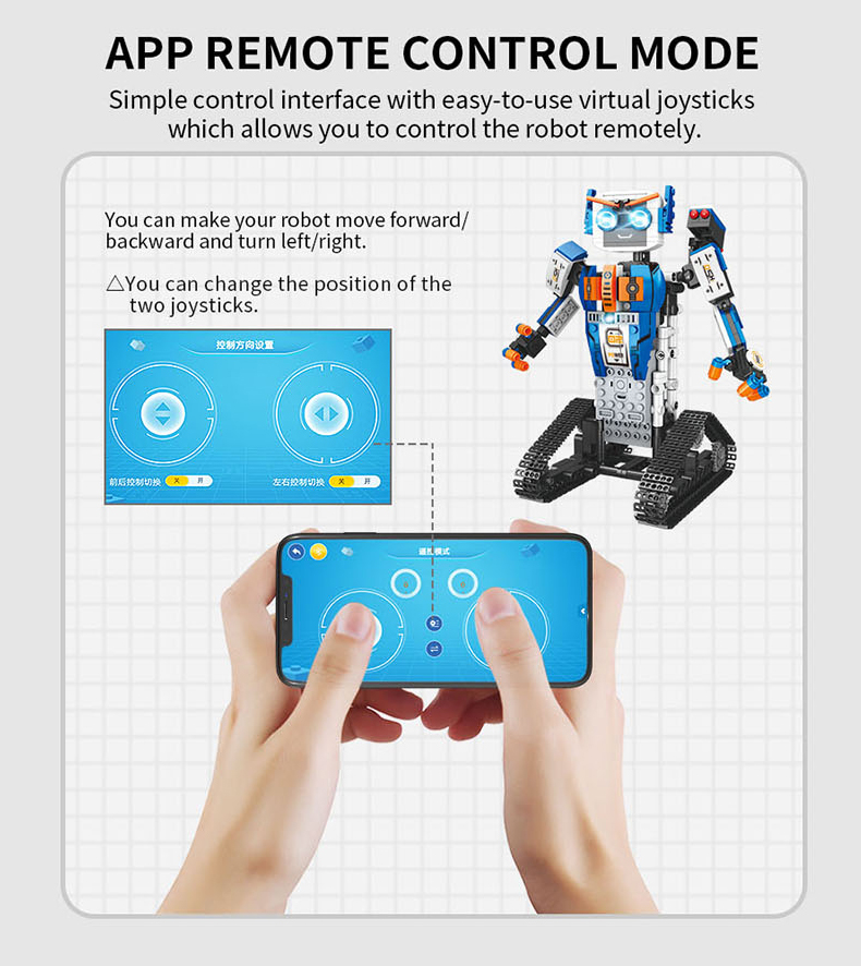 Το ρομπότ διαθέτει εύκολο στην χρήση τηλεχειριστήριο και μπορεί να κάνει μια ποικιλία από κινήσεις και λειτουργίες.