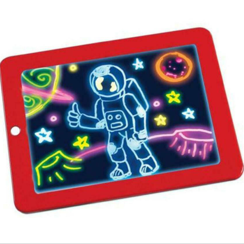 GlowPad LED Τάμπλετ Ζωγραφικής με Φωσφορίζοντα Χρώματα, 30 Στένσιλ & 3 Διπλούς Μαρκαδόρους Magic Sketchpad - Κόκκινο