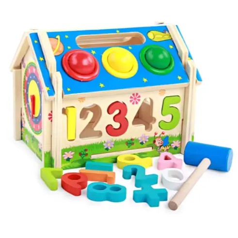 Το ξύλο εξασφαλίζει μακροχρόνια χρήση και ασφάλεια κατά τη διάρκεια του παιχνιδιού, ενώ τα φωτεινά χρώματα και τα σχέδια το καθιστούν οπτικά ελκυστικό.