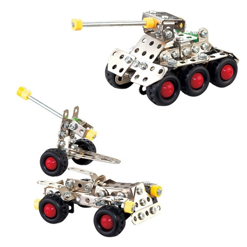 Διασκέδαση, Φαντασία και εκπαίδευση με αυτό το υπέροχο σετ συναρμολογούμενων οχημάτων από βίδες και παξιμάδια ! Μπορείτε να φτιάξετε ένα τανκ, αμάξι και τρέιλερ με κανόνι ! Με τη φαντασία σας όμως μπορείτε να κάνετε απίστευτες δημιουργίες και να εντυπωσιάσετε τους φίλους σας.