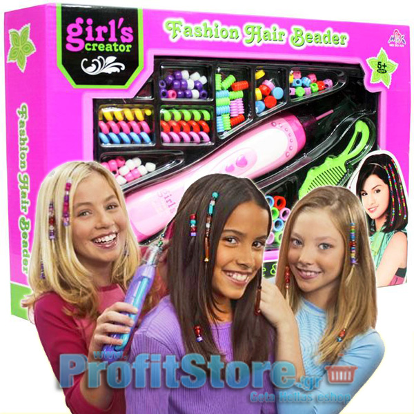 Σετ με Χάντρες Διακόσμησης Μαλλιών - Fashion Hair Beader. Το σετ περιλαμβάνει: 1 Συσκευή τοποθέτησης, 1 Χτενάκι, 10 διαφορετικών ειδών χάντρες σε απίθανα σχέδια και χρώματα. Κατάλληλο για παιδιά άνω των 5 ετών.