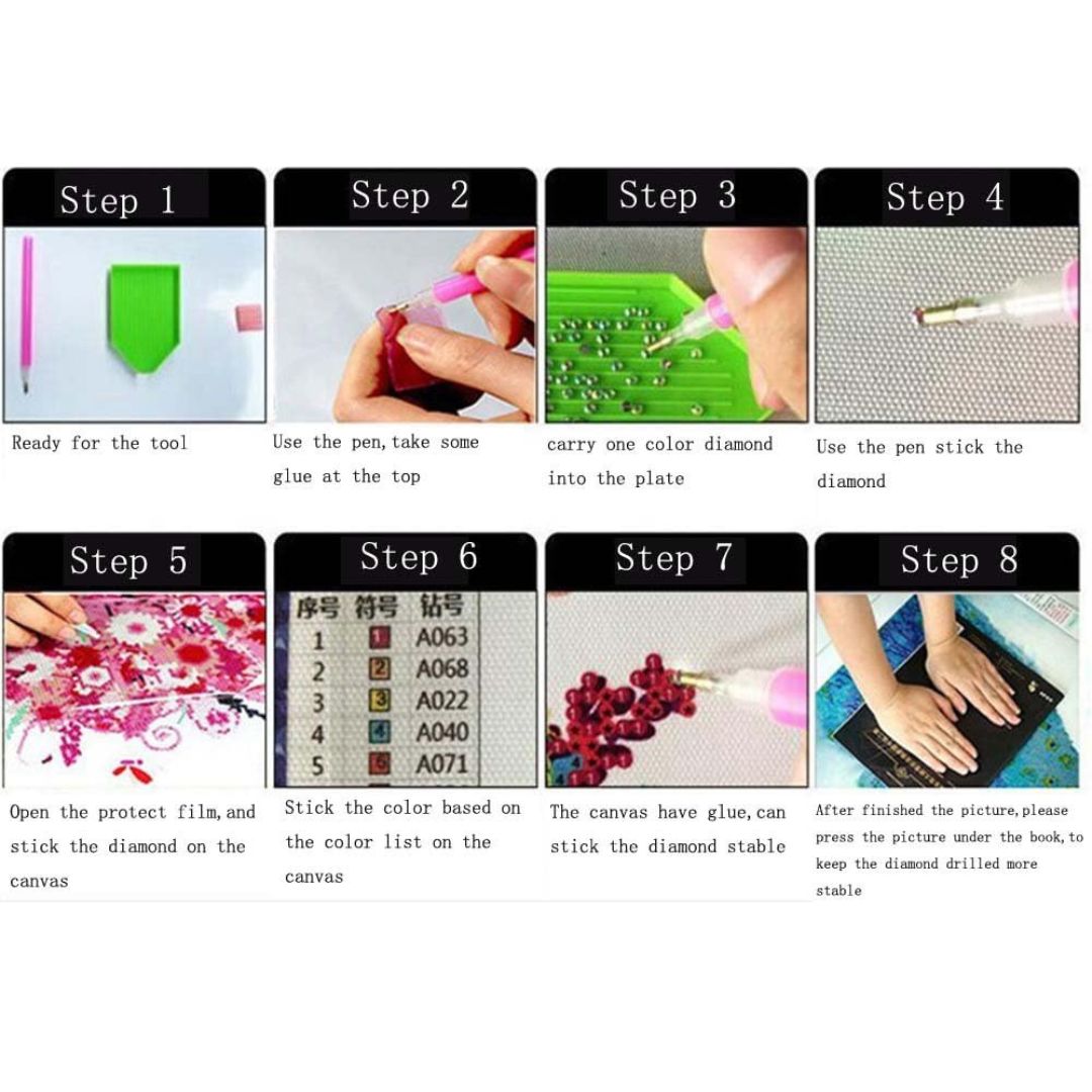 ✅ Οι ψηφίδες εφαρμόζονται εύκολα με το ειδικό στυλό και την κολλώδη επιφάνεια του καμβά, χωρίς την ανάγκη για ράψιμο.