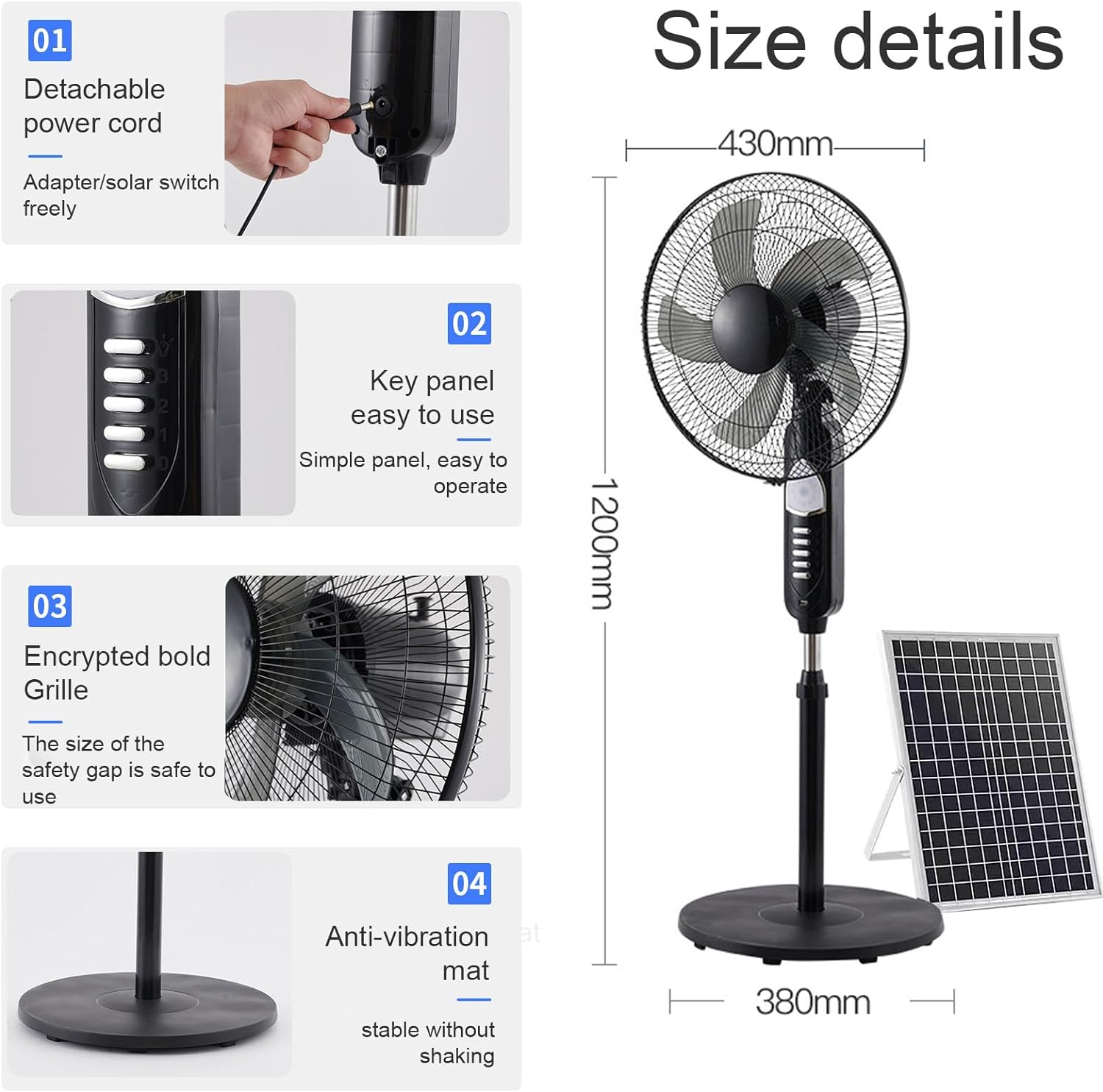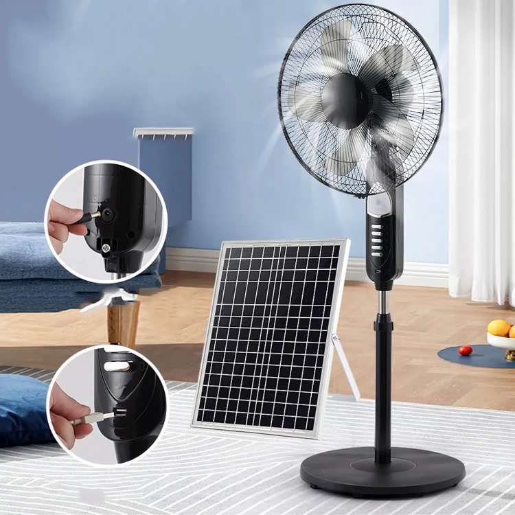 Επιπλέον, για ημέρες με περιορισμένο ηλιακό φως ή κατά τις νυχτερινές ώρες, ο ανεμιστήρας μπορεί να φορτιστεί άνετα χρησιμοποιώντας τον παρεχόμενο μετασχηματιστή εναλλασσόμενου ρεύματος.