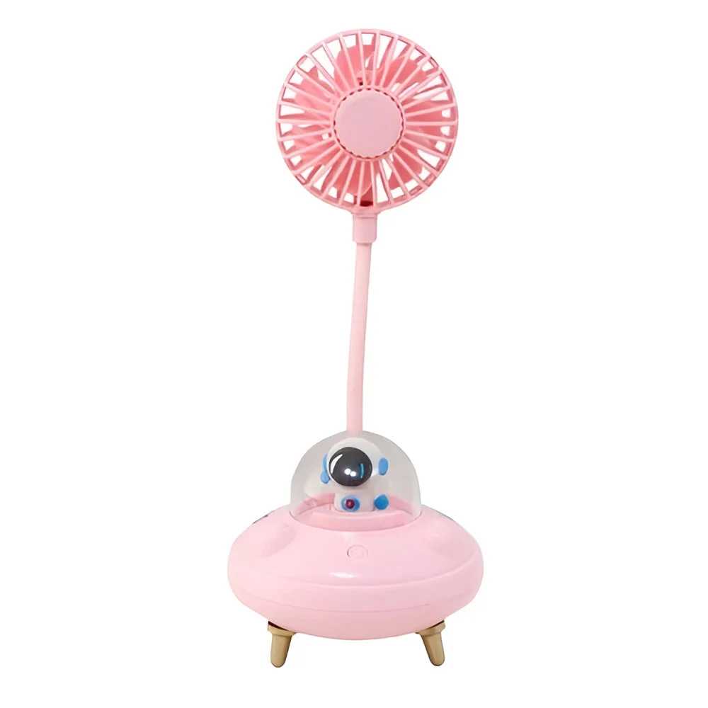 Παιδικός ανεμιστήρας USB σε ροζ χρώμα Arrango με σχέδιο αστροναύτη και UFO. Φορητός, ελαφρύς, με εύκαμπτο λαιμό για κατεύθυνση αέρα. Ιδανικός για παιδικό δωμάτιο, γραφείο ή κομοδίνο. Φανταστικός σχεδιασμός, φυσική δροσιά και χαμηλή κατανάλωση