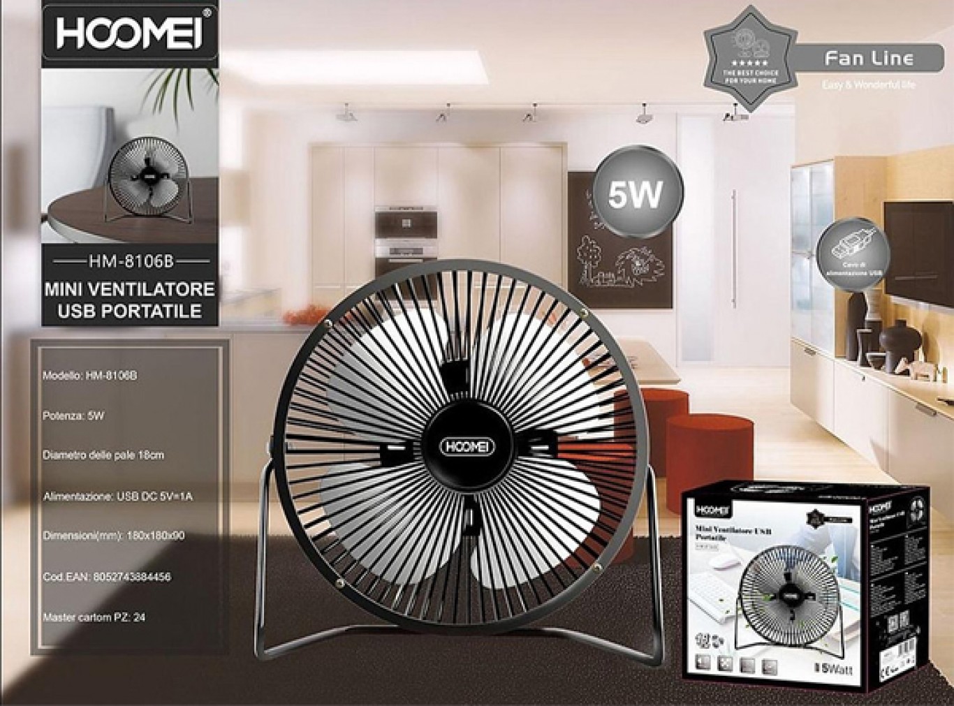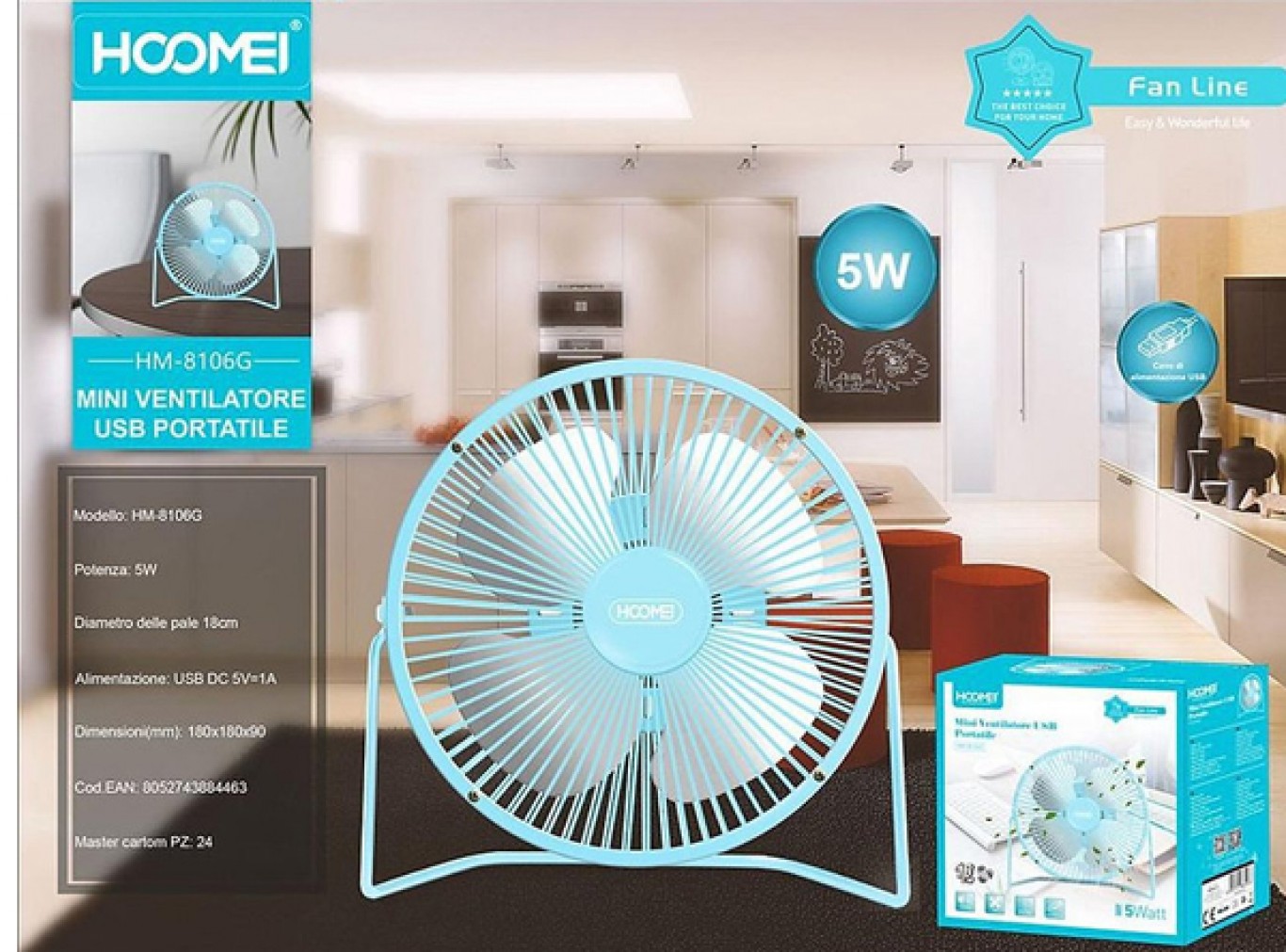 Μίνι ύπερ-πρωτοποριακό μεταλλικό ανεμιστηράκι 5W, με την εγγύηση ποιότητας της Hoomei®!