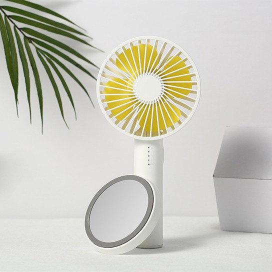 Μίνι USB Επαναφορτιζόμενος Φορητός Ανεμιστήρας με Βάση Καθρέφτη - Makeup Mirror Handheld Fan Λευκό,Κίτρινο
