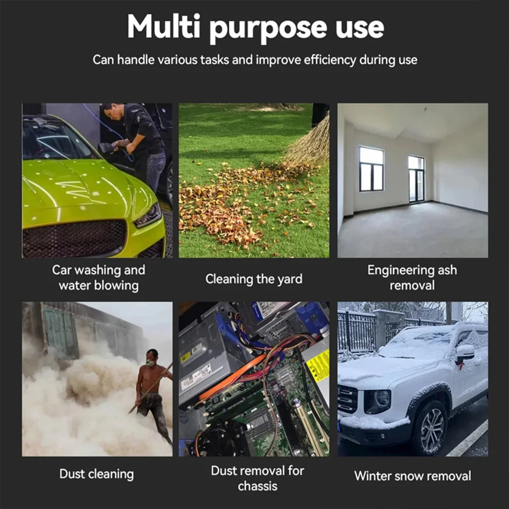 Με την ισχυρή τεχνολογία turbofan και τη λειτουργία πολλαπλών ταχυτήτων, μπορείτε να επιτύχετε αποτελεσματικό καθαρισμό, απομάκρυνση σκόνης και φύλλων, αλλά και ταχύτερο στέγνωμα επιφανειών ή υγρών.