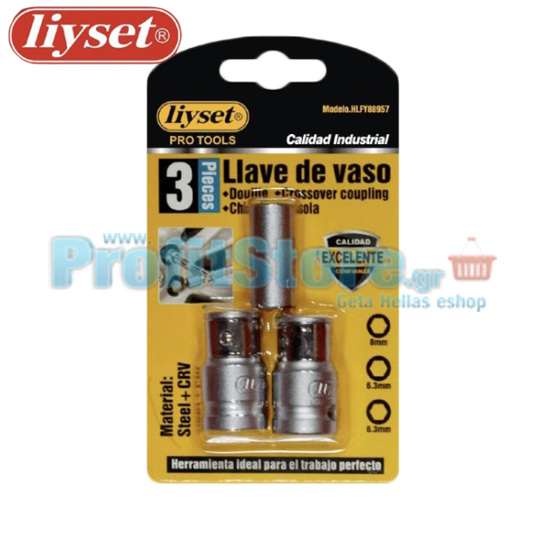 • Το σετ περιλαμβάνει 3 καρυδάκια με μεγέθη: 1/4"-6.3mm, 3/8"-6.3mm, 3/8"-8mm