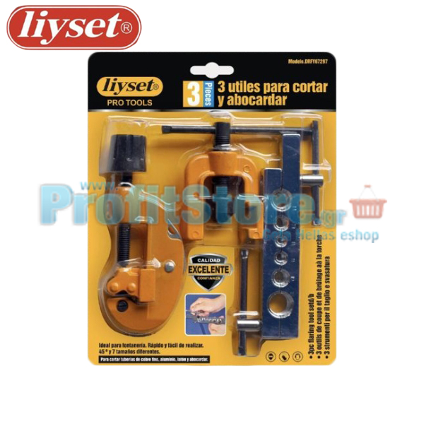 Ένα ιδανικό σετ κόφτη και εκτονωτικού σωλήνων αλουμινίου και χαλκοσωλήνων. Το σετ περιλαμβάνει, 1 εκτονωτή με περιστρεφόμενο χερούλι από επιχρωμιωμένο επισκληρυμένο ατσάλι, 1 παξιμάδι πεταλούδα από επισκληρυμένο ατσάλι και 1 ρυθμιζόμενο σωληνοκόφτη από επισκληρυμένο ατσάλι.