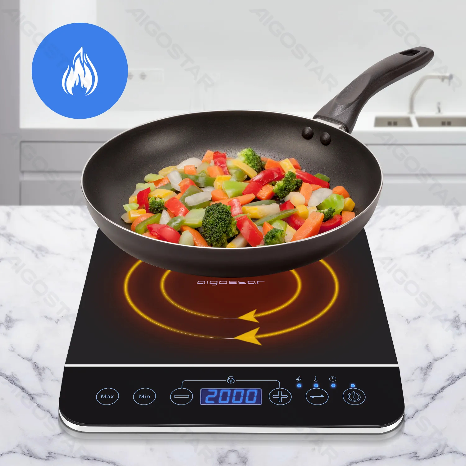 Η Aigostar BlueFire 2000W είναι μια σύγχρονη φορητή επαγωγική εστία σχεδιασμένη για όσους θέλουν γρήγορο και αποδοτικό μαγείρεμα στο σπίτι, στο εξοχικό ή στο γραφείο.