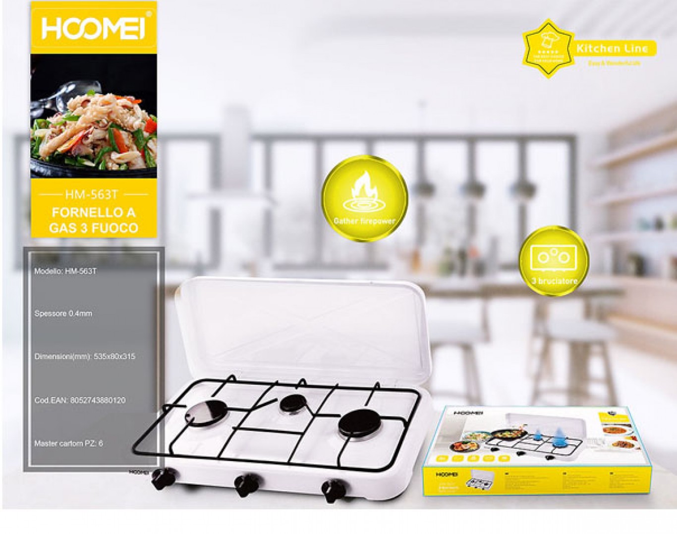Πρωτοποριακή, επιτραπέζια τριπλή εστία υγραερίου με την εγγύηση ποιότητας της Hoomei®! Ιδανική για να μαγειρεύετε υγιεινά γεύματα, από την άνεση του σπιτιού σας. Χάρη στον καινοτόμο σχεδιασμό της μεταφέρεται εύκολα, κάτι που την κάνει ιδανική για εξοχικά και σπίτια φοιτητών!