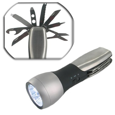 Φακός 200Lm LED - Πολυεργαλείο 10 σε 1 με Μαχαίρια, Ψαλίδι, Ανοιχτήρι, Κατσαβίδι, Λίμα, Πριονάκια, Κλειδιά