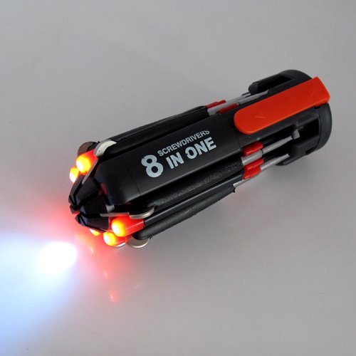 - Σετ πολυεργαλείου 8 σε 1, κατσαβίδια και φακός 8 σε 1, διαθέτει και κλιψάκι για να μπορείτε να το έχετε και στην ζώνη του παντελονιού σας ή ακόμη και στην τσέπη του τζιν σας.