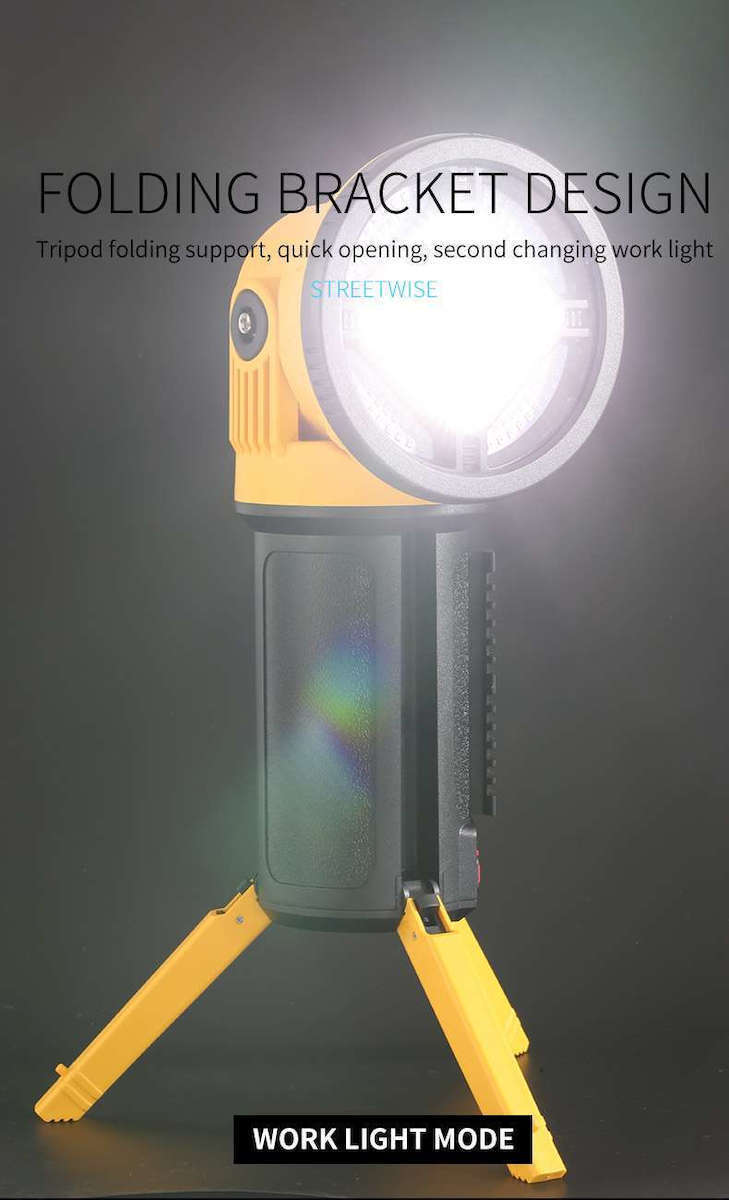 Ο επαναφορτιζόμενος προβολέας χειρός LED προσφέρει μέγιστη φωτεινότητα 1100 lumens, ιδανική για επαγγελματική και προσωπική χρήση.