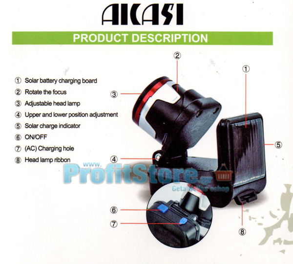 Ηλιακός Φακός Κεφαλής LED ΖΟΟΜ 10W - 170LM - Solar Headlight AKASI DX-T855