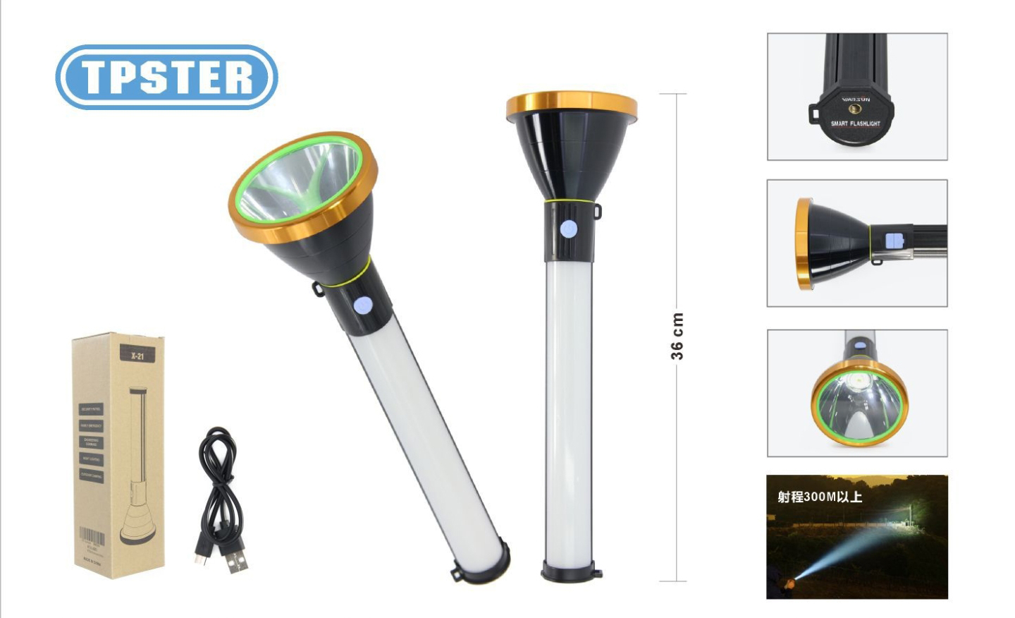 Μοναδικός επαναφορτιζόμενος φακός Led υψηλής φωτεινότητας και ισχυρότατης δέσμης που είναι ορατός ακόμα και 300 μέτρα μακρυά, ενώ έχει και φωτιστικό με 12 led. Ιδανικός ισχυρός φακός για εταιρείες security, φύλακες, εργοτάξια, το σπίτι, αυτοκίνητο, κυνήγι, ψάρεμα, ορειβάτες κλπ.
