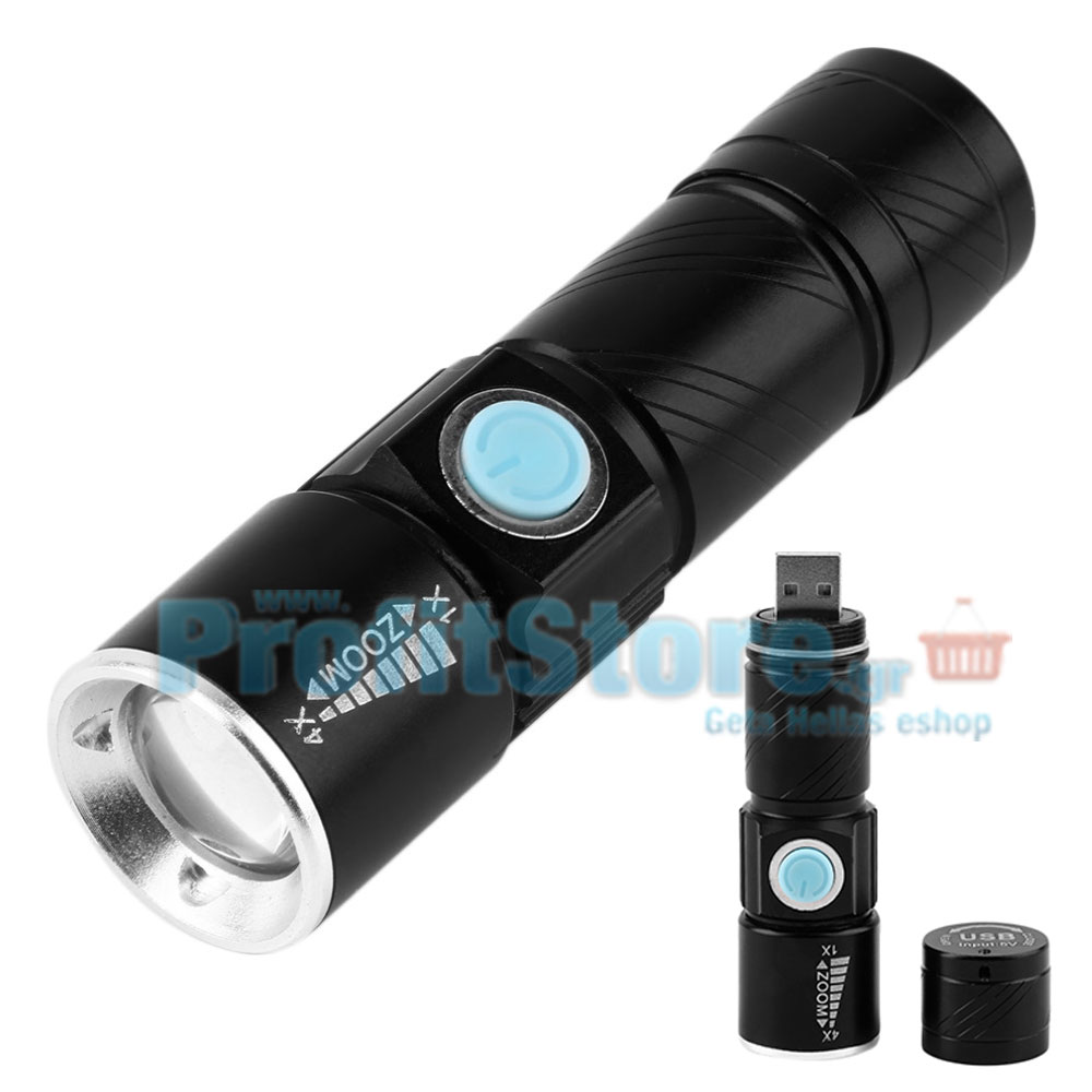 Ισχυρός φακός Tactical LED, αδιάβροχος, υψηλής φωτεινότητας CREE LED Q5 με ρυθμιζόμενη εστίαση και φόρτιση μέσω USB. Υψηλή φωτεινότητα 200 Lumens που μπορεί να φωτίσει σε απόσταση έως και 300 μέτρα!