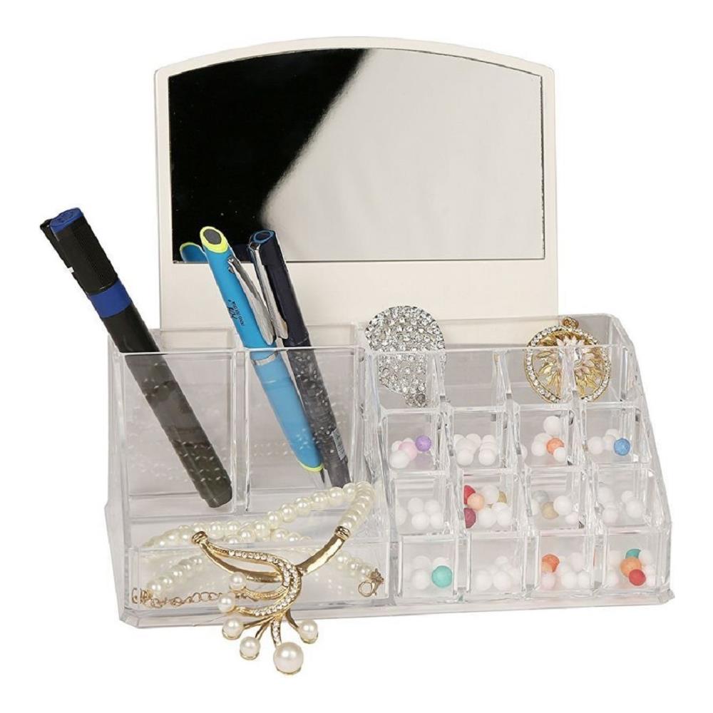 Σταματήστε να σπαταλάτε χρόνο ψάχνοντας μέσα στο συρτάρι για να βρείτε το κραγιόν ή τη σκιά ματιών σας! Με τον καταπληκτικό οργανωτή Καλλυντικών/Κοσμημάτων θα έχετε όλα τα καλλυντικά και κοσμήματα σας πάντα σε ετοιμότητα και καλά οργανωμένα.