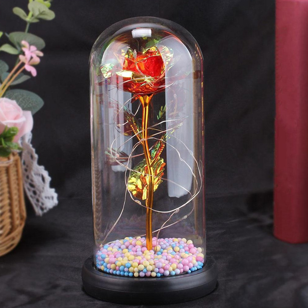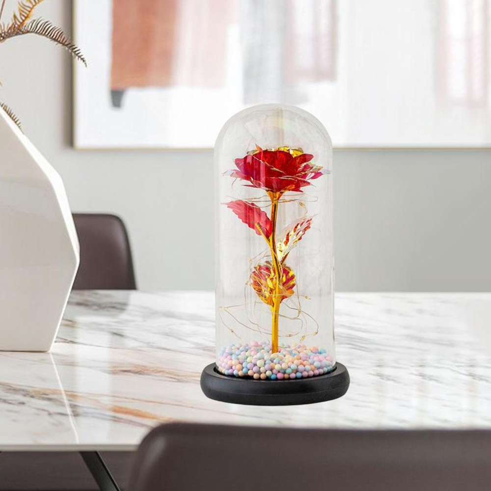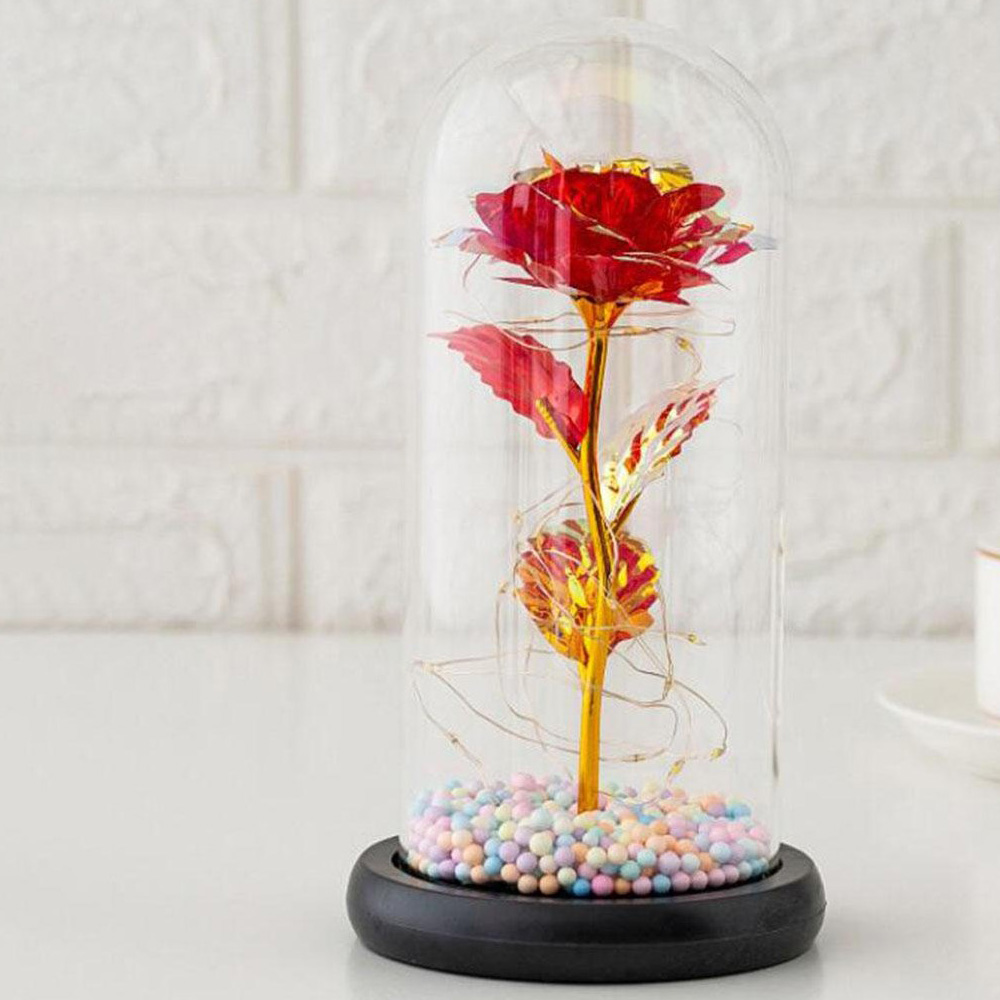 Forever Rose Κρυστάλλινο Φωτιζόμενο Τριαντάφυλλο σε Γυάλινο Βάζο με Πολύχρωμα LED Λαμπάκια - Κόκκινο