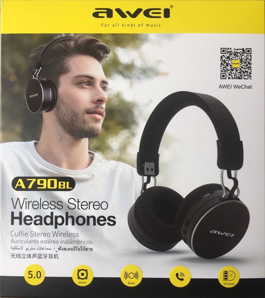 Ασύρματα & ενσύρματα on-ear bluetooth ακουστικά A790BL, υψηλής ποιότητας και αισθητικής, με είσοδο AUX Jack 3,2mm για σύνδεση με το κινητό ή κάποια άλλη εξωτερική πηγή ήχου με την εγγύηση της AWEI.