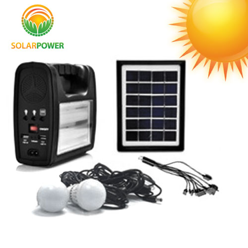 Πλήρες φορητό ηλιακό AC κιτ βαλιτσάκι με ηλιακό panel, φακό και φωτιστικό LED και πολυφορτιστής κινητών και USB συσκευών + 2 λαμπτήρες LED 3W μεγάλης φωτεινότητας 90LM.