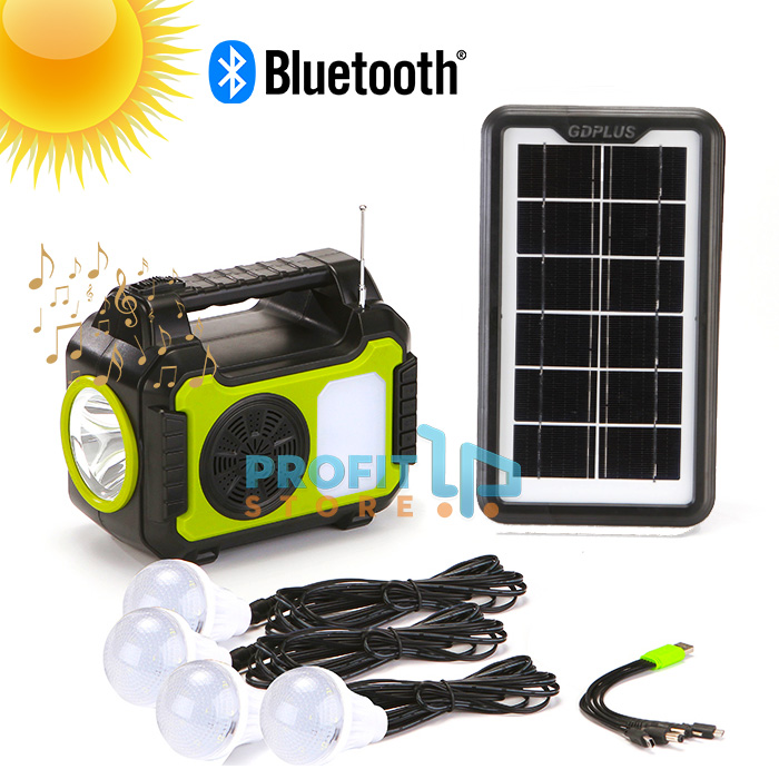 Αυτό το ηλιακό σετ, ξεχωρίζει καθώς διαθέτει Bluetooth ασύρματο ενσωματωμένο ηχείο και μπορεί να αναπαράγει την μουσική που έχετε αποθηκευμένη στο κινητό σας ή σε USB stick και Micro SD κάρτα ή μέσω AUX καλωδίου Jack 3,5mm (από εξωτερική πηγή ήχου) ή ραδιόφωνο FM>