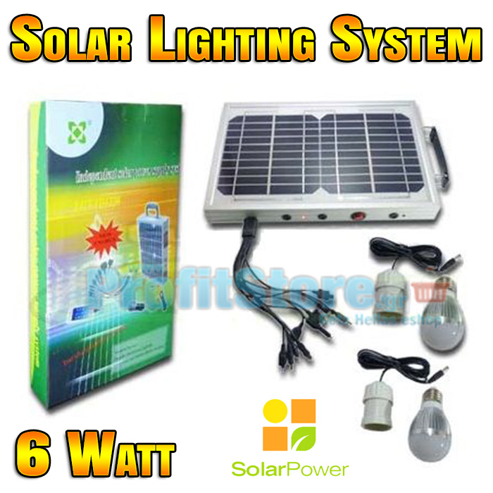 Πλήρες ηλιακό πακέτο φωτισμού με ισχυρό ηλιακό panel 6 Watt, ενσωματωμένη μπαταρία 4,5Ah, θύρα usb για φόρτιση συσκευών, 2 λάμπες led 3 Watt και πλεξούδα usb με αντάπτορες για φόρτιση διαφορετικών συσκευών και κινητών τηλεφώνων.