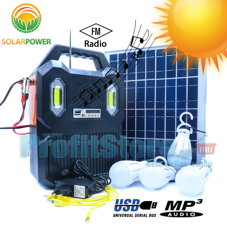 Το συγκεκριμένο ηλιακό σετ, διαφέρει από όλα τα άλλα παρόμοια καθώς διαθέτει ενσωματωμένο ηχείο και μπορεί να αναπαράγει την μουσική που έχετε αποθηκευμένη σε USB stick ή Micro SD κάρτα. Ακόμα, διαθέτει ραδιόφωνο FM ώστε να ακούτε τον αγαπημένο σας ραδιοφωνικό σταθμό όπου και να είστε!