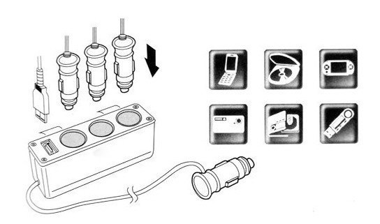 Μετατρέπει μία θέση για φόρτιση σε τρεις. Διαθέτει έξοδο USB και 3 υποδοχές αναπτήρα έτσι μπορείτε να συνδέεται ταυτόχρονα ως και 4 συσκευές. Έτοιμο για χρήση και άμεση λειτουργία.