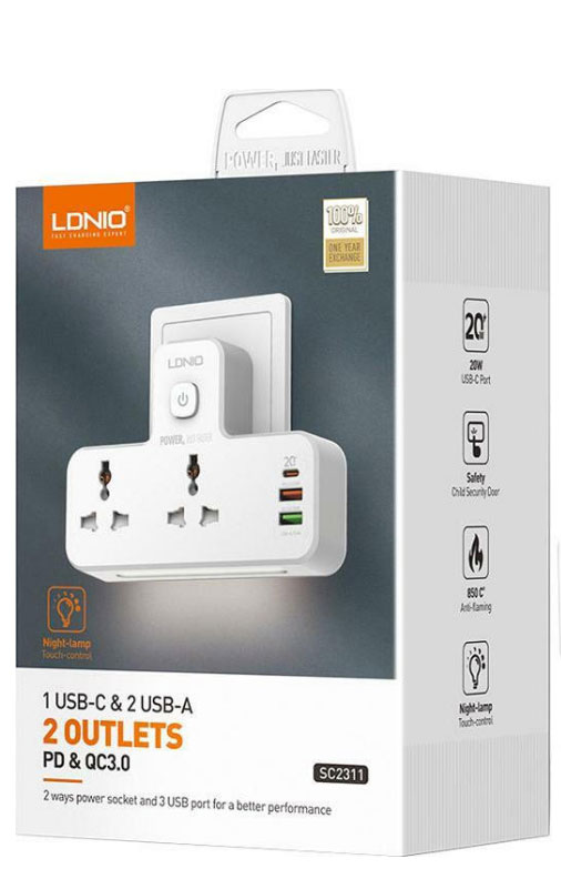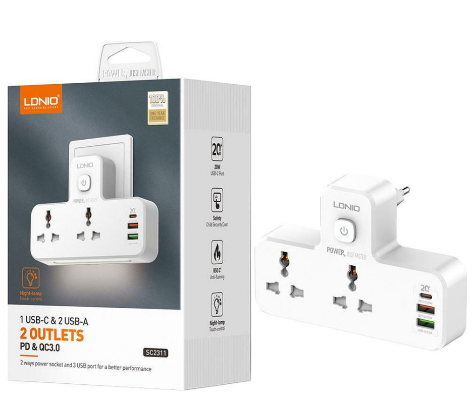 Με 3 υποδοχές USB (1xUSB-C & 2xUSB-A) με τεχνολογία auto-ID 2.4A και 2 universal πρίζες.