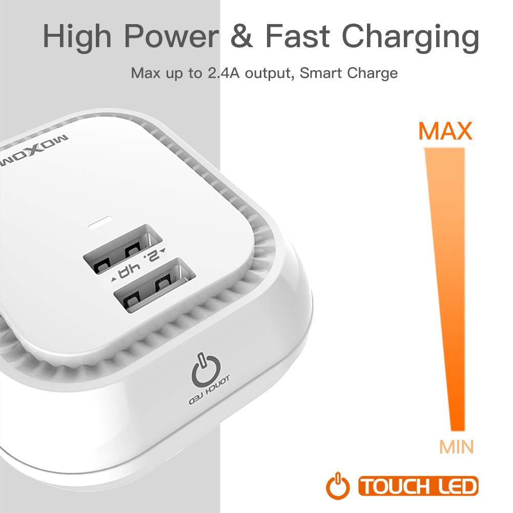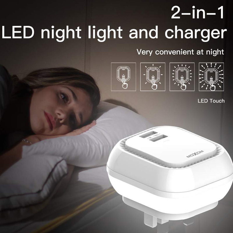 Εξαιρετικό φωτάκι νυχτός με αυξομειωμένη ένταση και διακόπτη αφής που ταυτόχρονα είναι και ένας ταχυφορτιστής κινητών και USB συσκευών. Διαθέτει 2 εξόδους USB 5V/2.4A.