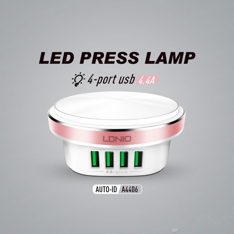 Λαμπάκι - Φωτάκι Νυκτός με 4 Εξόδους USB - 4.4A-Ldnio Night-light Charger 4x USB Wall Adapter A4406