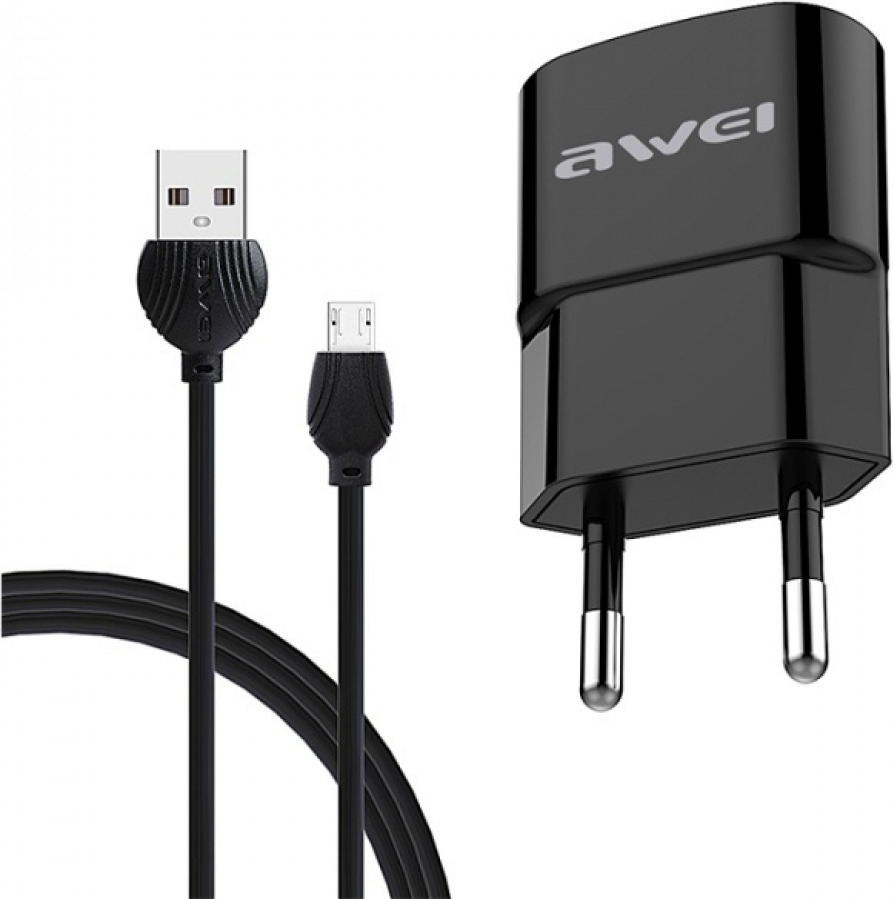 Awei Φορτιστής Πρίζας με 2 Θύρες USB 2.1A Γρήγορης Φόρτισης - Μαύρο