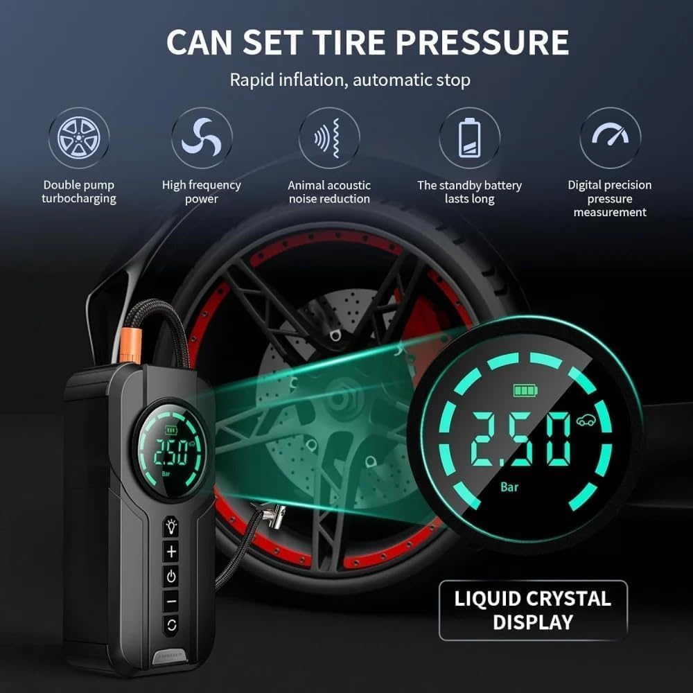 ✔️ Με δυνατότητα φόρτισης ηλεκτρονικών συσκευών και φούσκωμα ελαστικών ή άλλων αντικειμένων, προσφέρει πολυλειτουργική χρήση για καθημερινές ή έκτακτες ανάγκες.