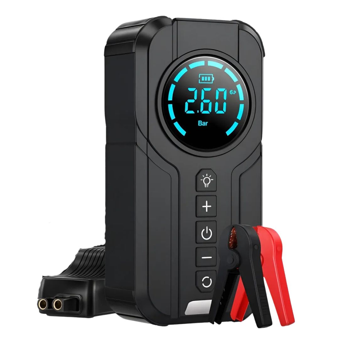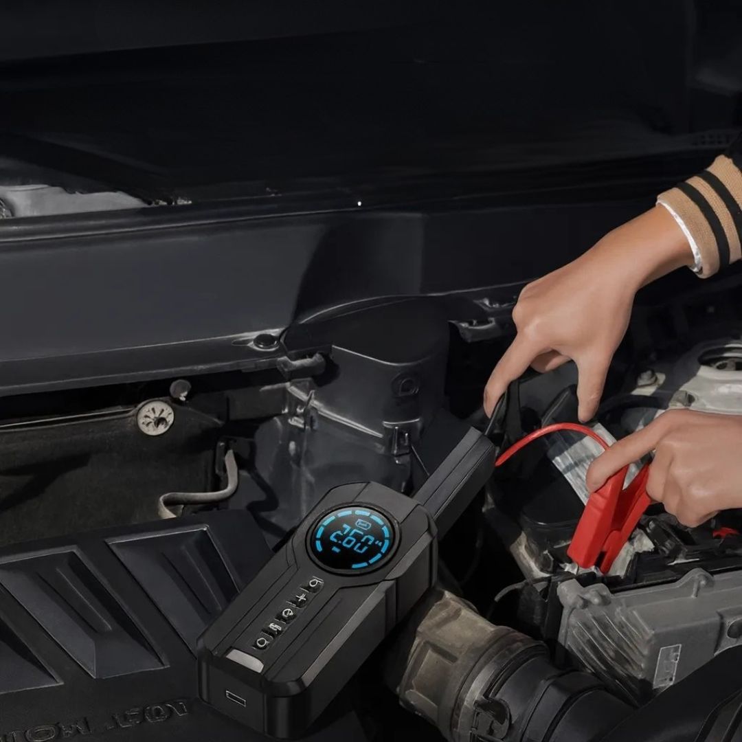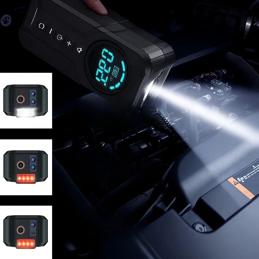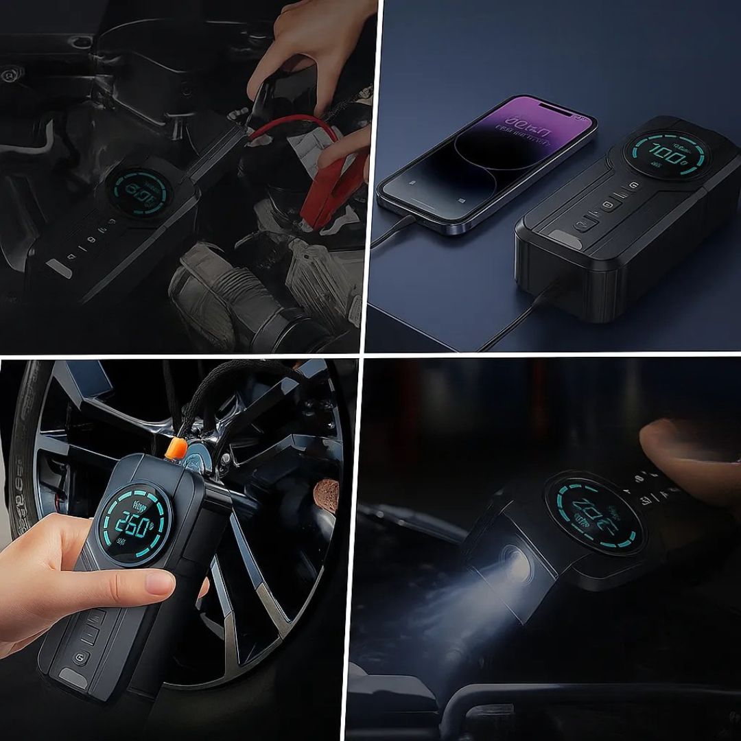 Αποκτήστε μία πολυλειτουργική συσκευή έκτακτης ανάγκης, που συνδυάζει εκκινητή μπαταρίας, αεροσυμπιεστή και power bank σε ένα πρακτικό και συμπαγές σώμα.