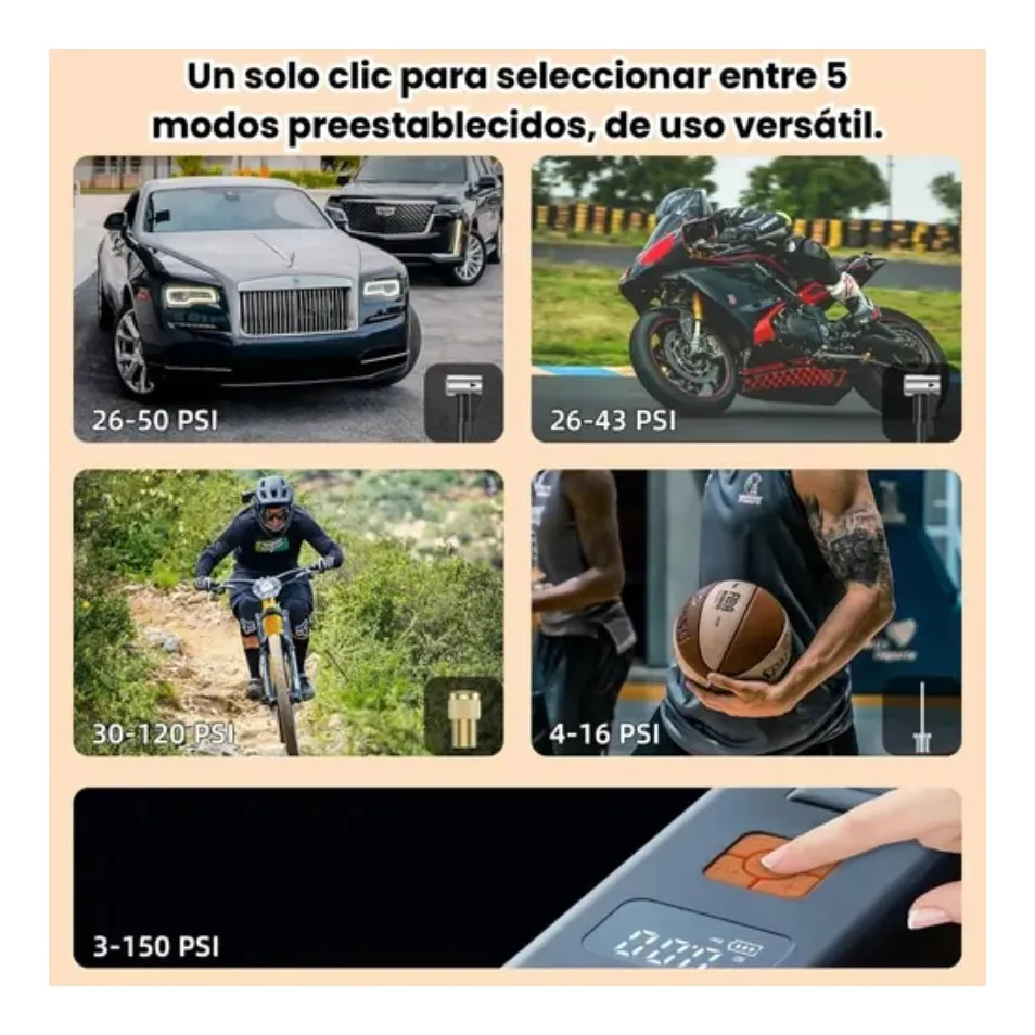 ✔️ Σας εξυπηρετεί σε αυτοκίνητο, μοτοσυκλέτα, ποδήλατο ή αθλητικό εξοπλισμό, με προεπιλεγμένα επίπεδα πίεσης και εύρος λειτουργίας έως υψηλά PSI.