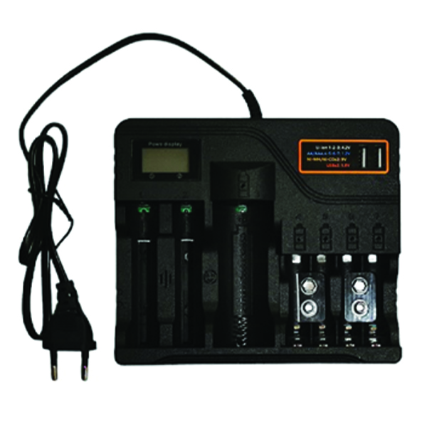 Φορτιστής 7 μπαταριών Li-ion/AAA/AA με 2 θύρες USB και ενσωματωμένη οθόνη για γρήγορη και εύκολη ανάγνωση.