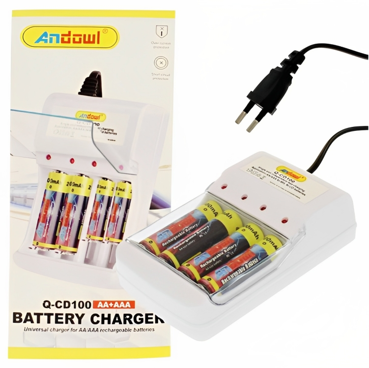 Ο Φορτιστής Πρίζας της Andowl έχει σχεδιαστεί για να φορτίζει 4 μπαταρίες Ni-MH εύκολα και αποτελεσματικά.