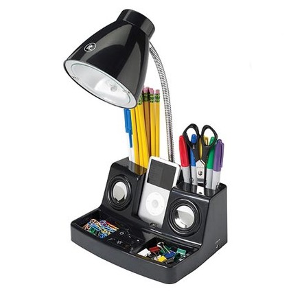 Ιδανικό Gadget για κάθε γραφείο που περιλαμβάνει: Ηχεία με ενισχυτή, λάμπα γραφείου, θέσεις για post-it γραφείου, μολυβοθήκες και θέση για τη συσκευή ήχου (iPod, MP3).
